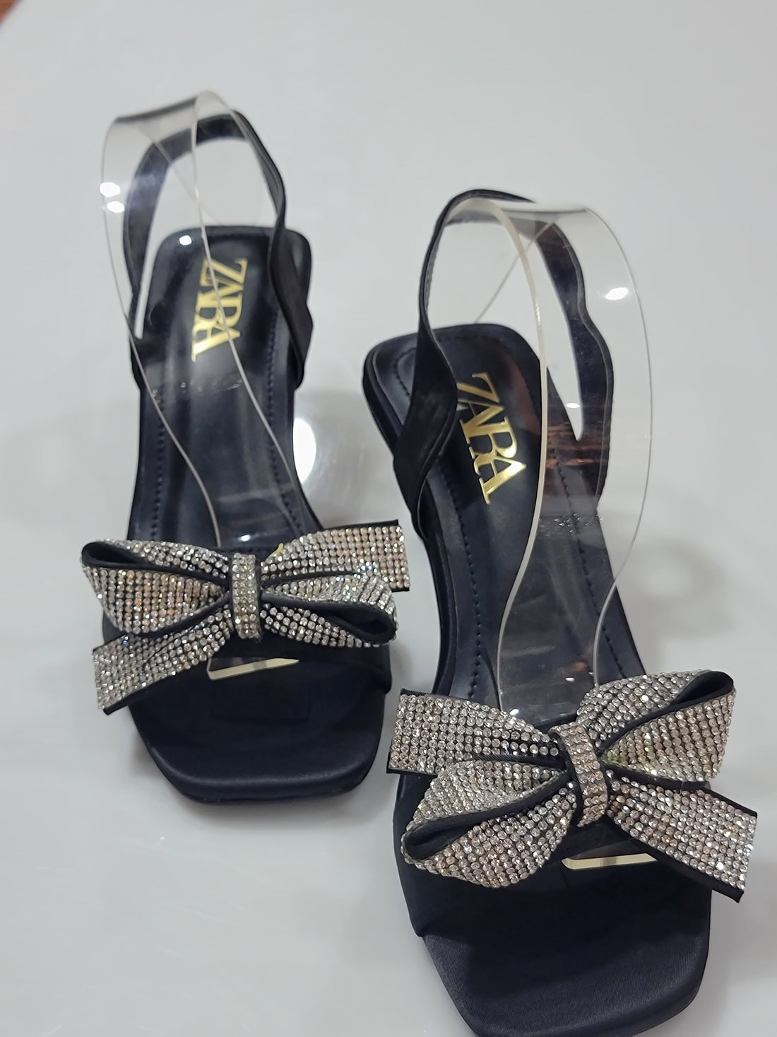 Elevate your style with Zara Mash Bow Heels. The elegant design features a unique mash...
